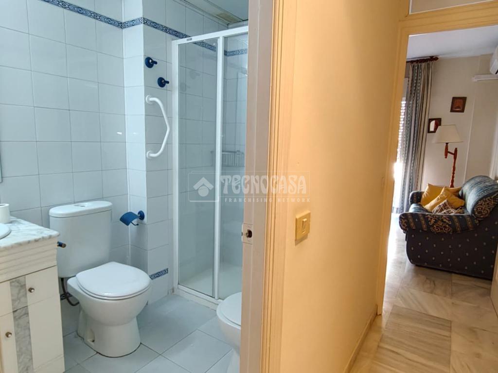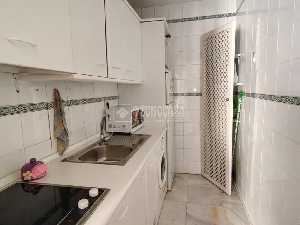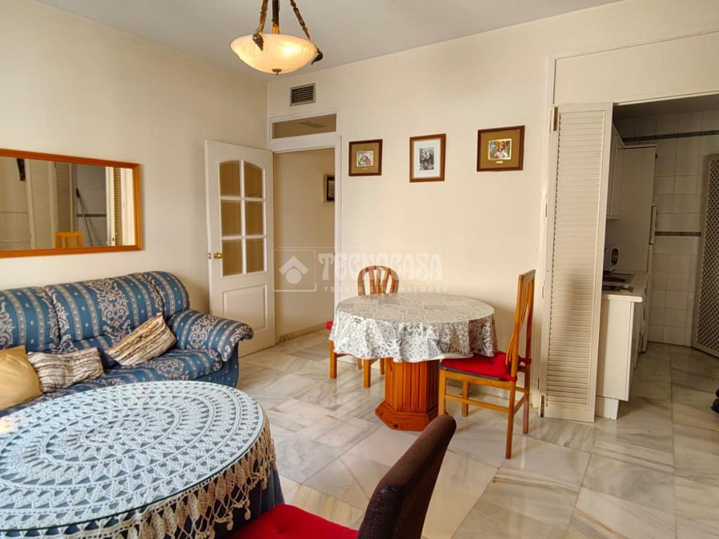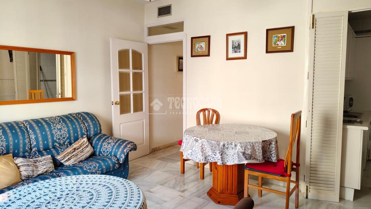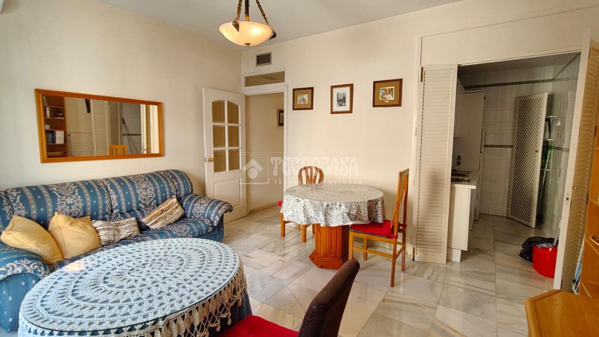 Cuenta con una habitación, baño completo con ducha, cocina amueblada, y un amplio salón-comedor con una terraza.