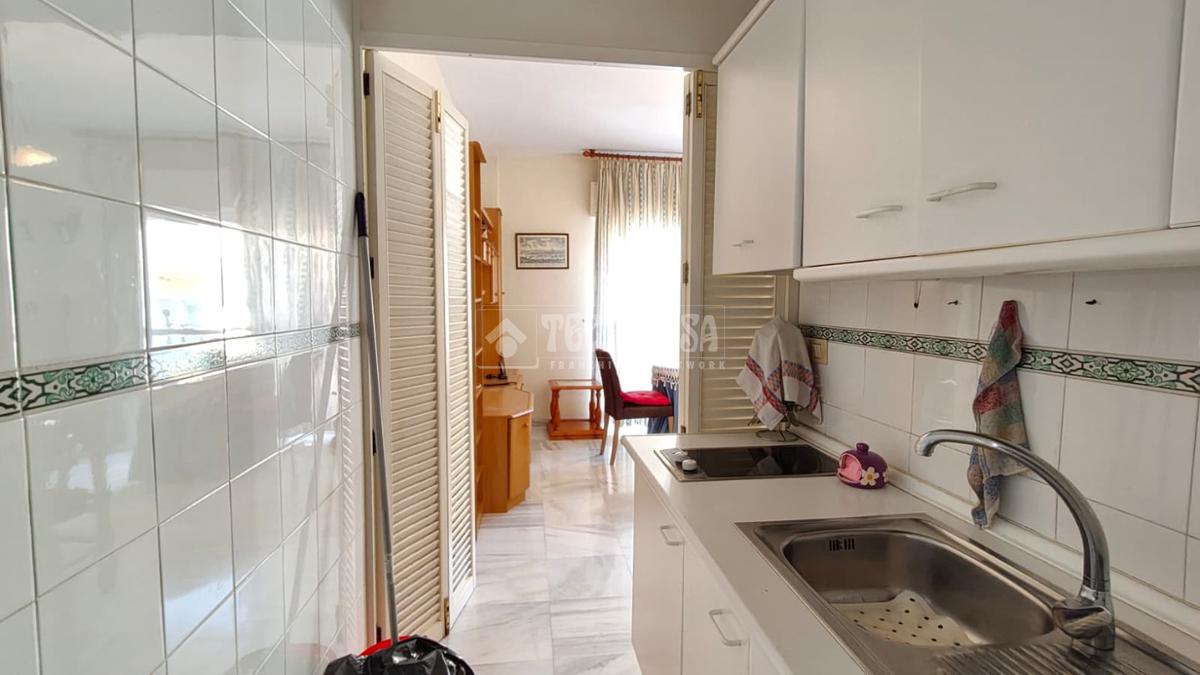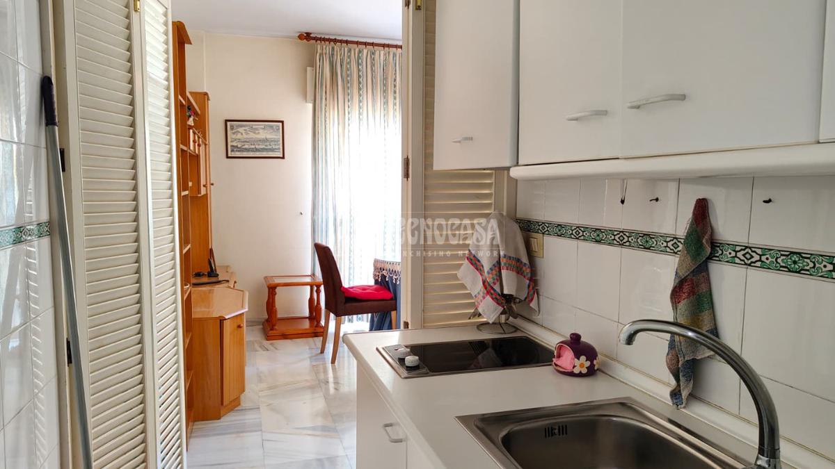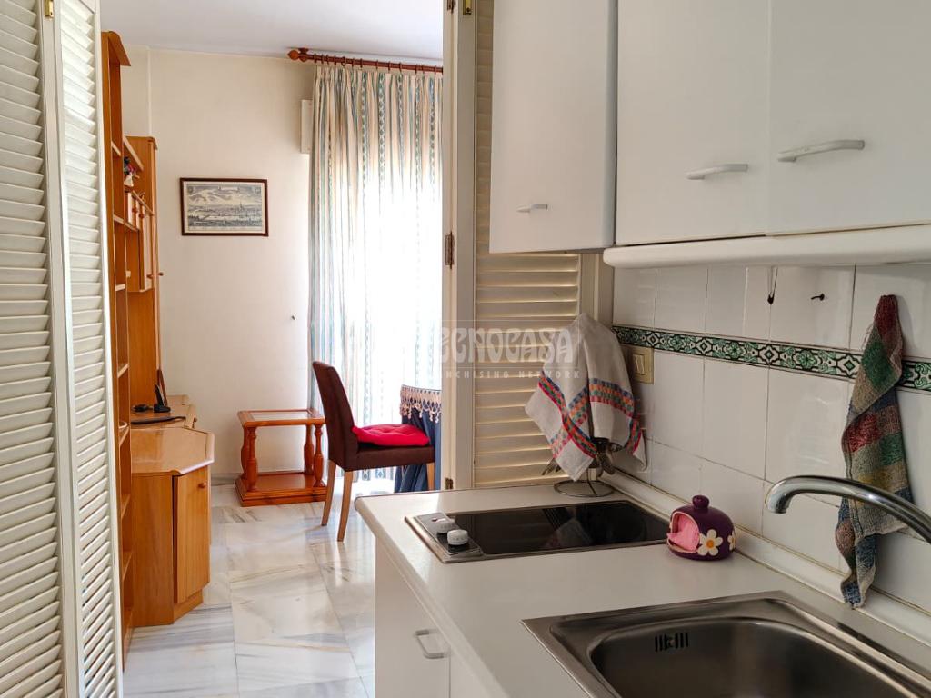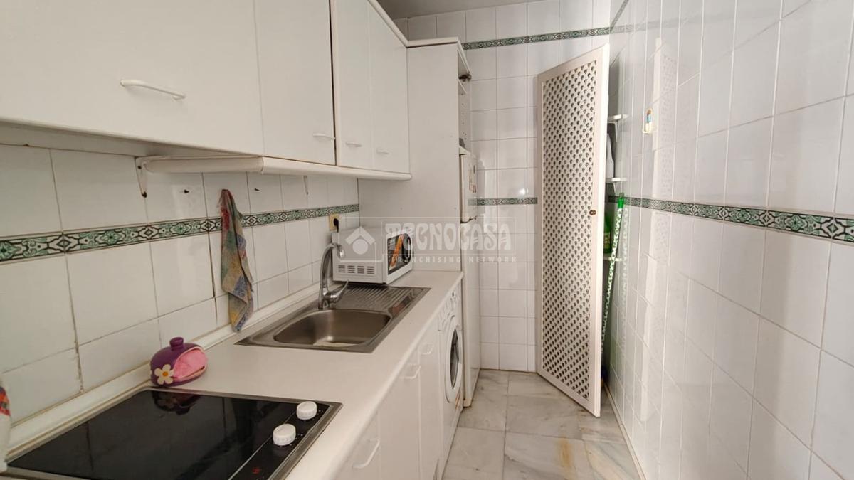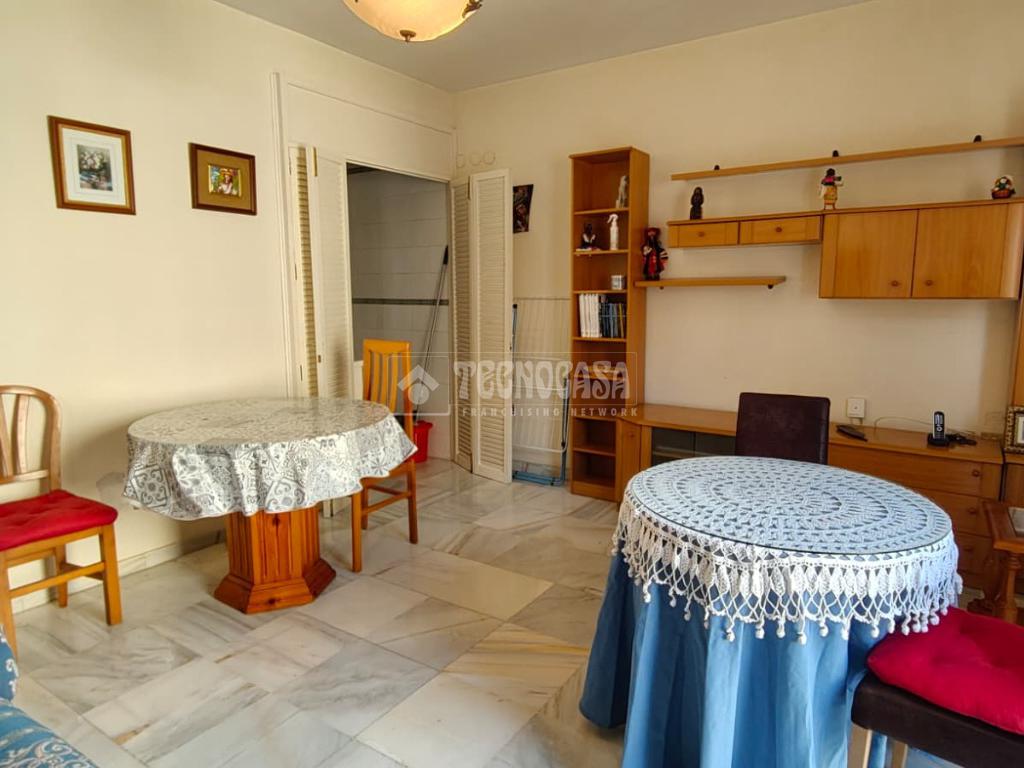 Cuenta con una habitación, baño completo con ducha, cocina amueblada, y un amplio salón-comedor con una terraza.